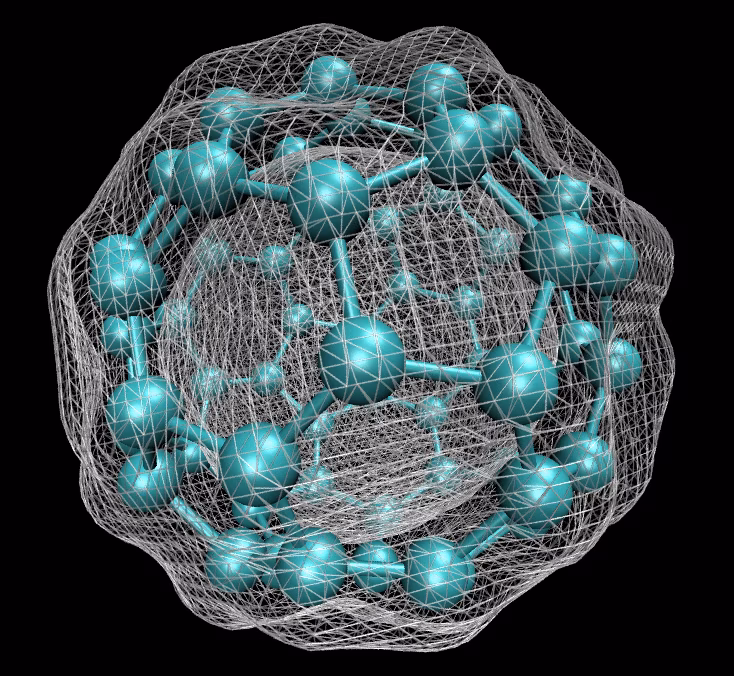 C60 molecule with isosurface of ground-state electron density as calculated with density functional theory
