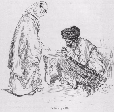 Telling a problem to a public scrivener. Istanbul, 1878.