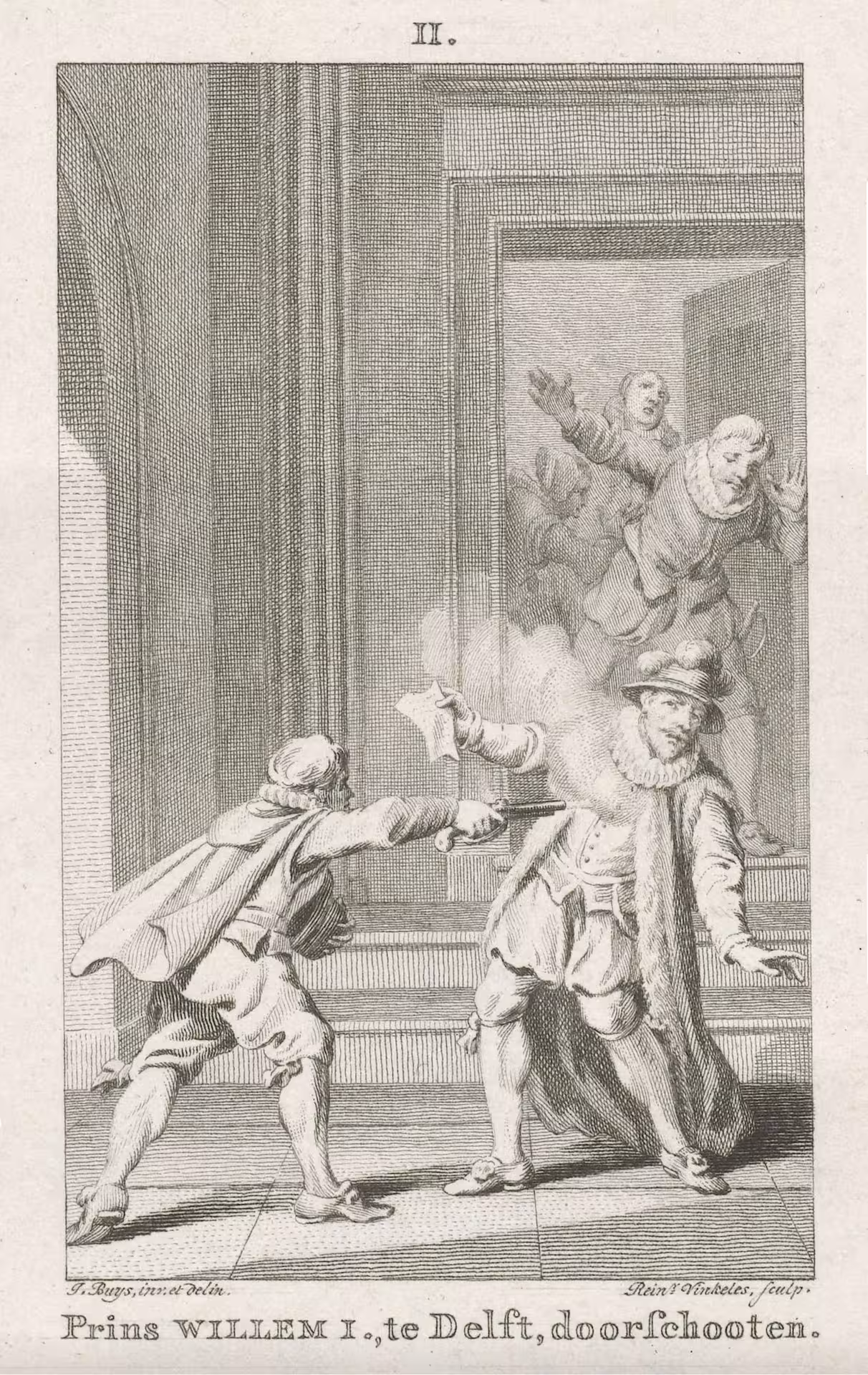 18th-century depiction of the assassination of William the Silent by Balthasar Gérard on 10 July 1584