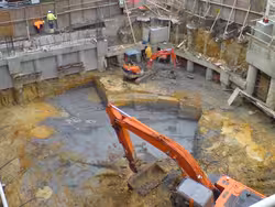 Clay layers in a construction site in Auckland, New Zealand. Dry clay is normally much more stable than sand in excavations.