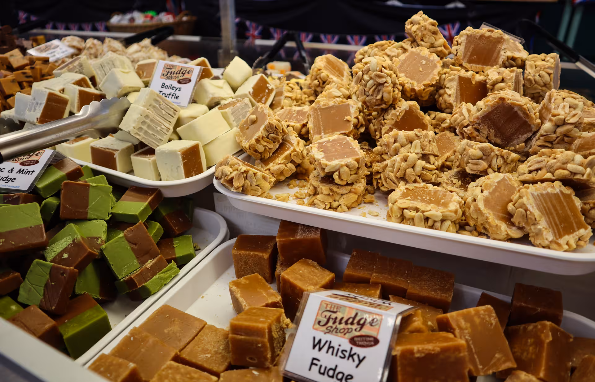(chiefly uncountable) A type of very sweet candy or confection, usually made from sugar, butter, and milk or cream.