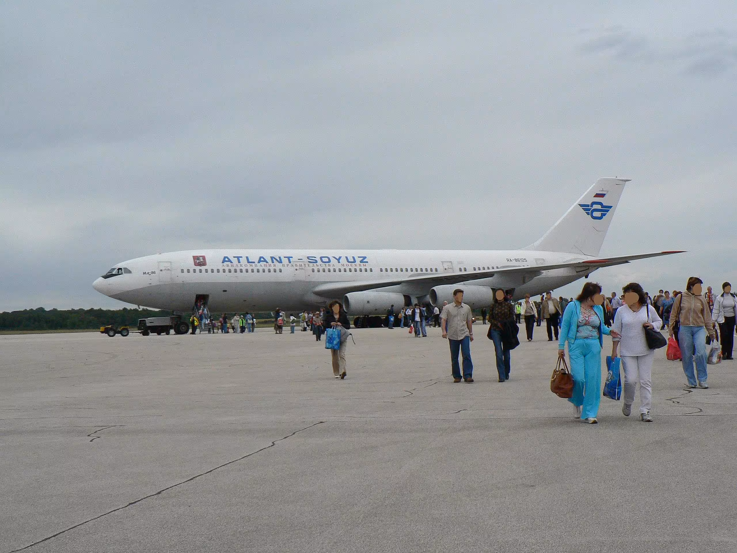 The Il-86, a wide-body airliner with airstairs into the lower cargo level. The rear airstair is also visible in this picture.