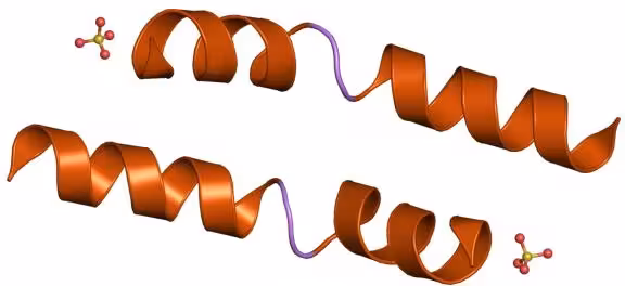 Steel sculpture based on the structure of melittin by Julian Voss-Andreae
