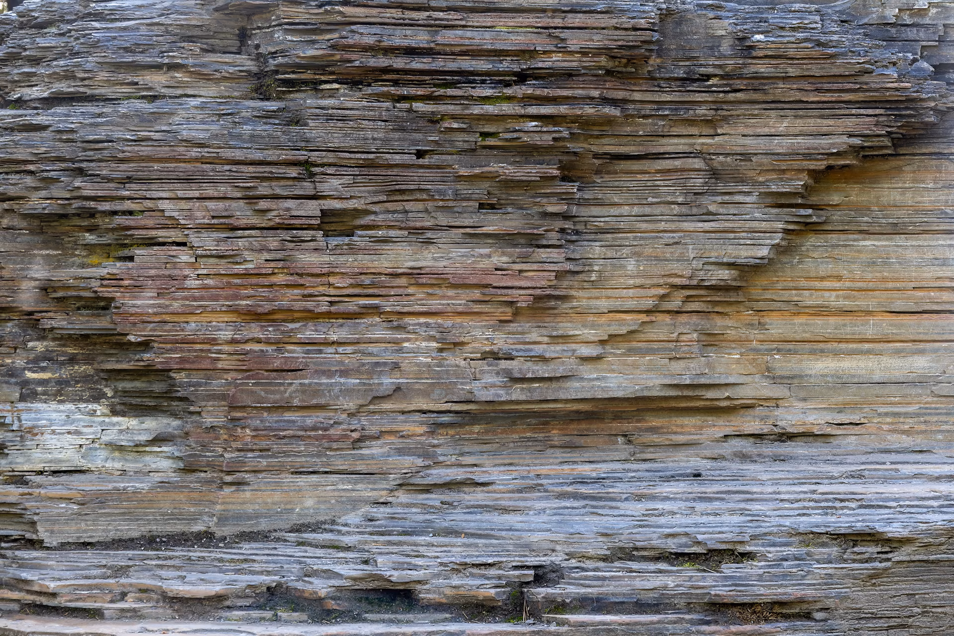 - (geology) A fine-grained sedimentary rock of a thin, laminated, and often friable, structure.