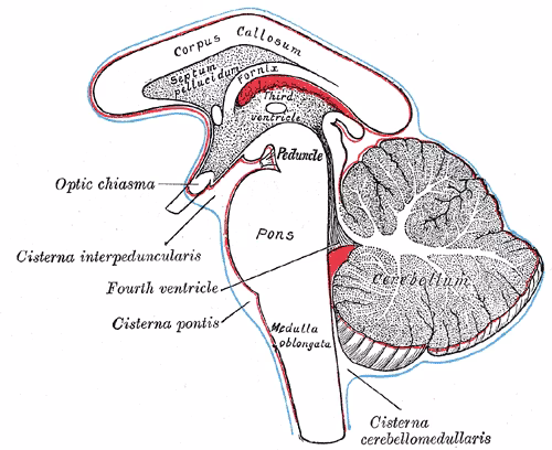 Diagram showing the positions of the three principal subarachnoid cisternæ.