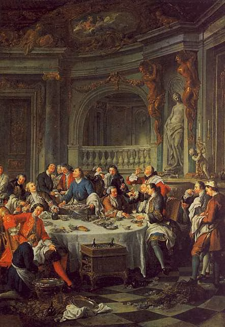 Jean François de Troy's 1735 painting Le Déjeuner d'Huîtres (The Oyster Luncheon) is the first known depiction of Champagne in painting.