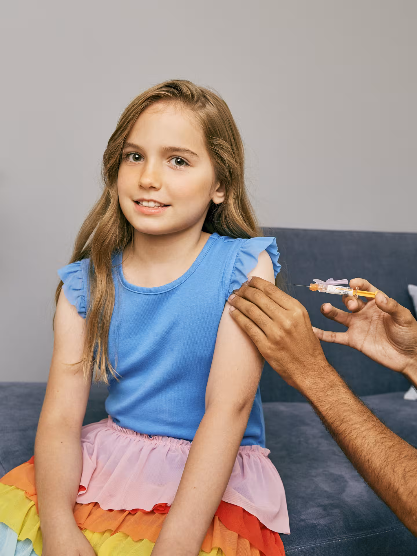 Girl about to be vaccinated in her upper arm