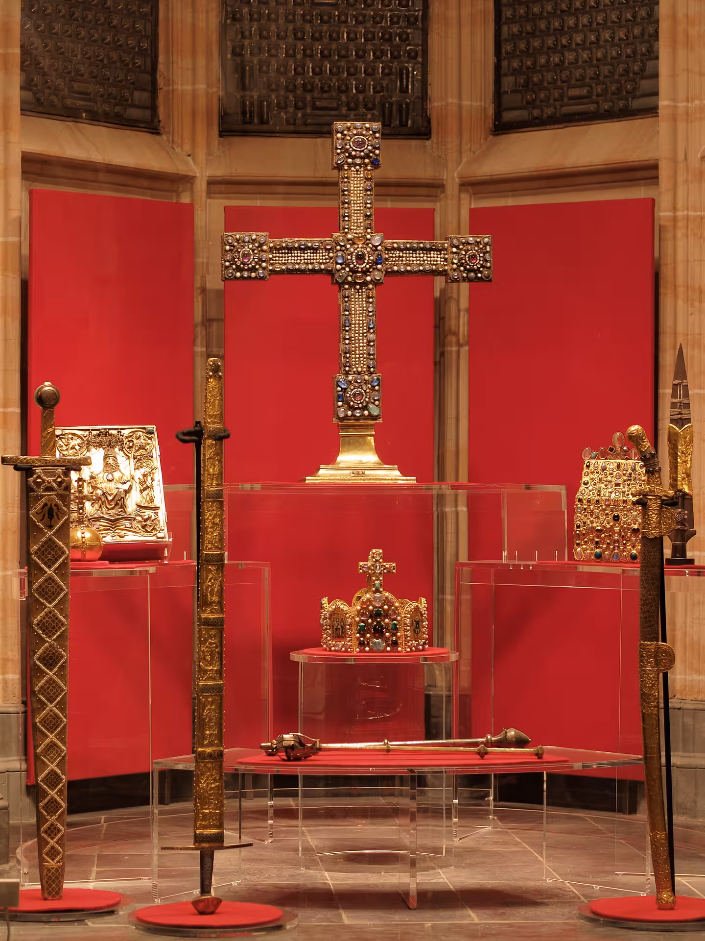 - The emblems, symbols, or paraphernalia indicative of royalty or any other sovereign status; such as a crown, orb, sceptre or sword.