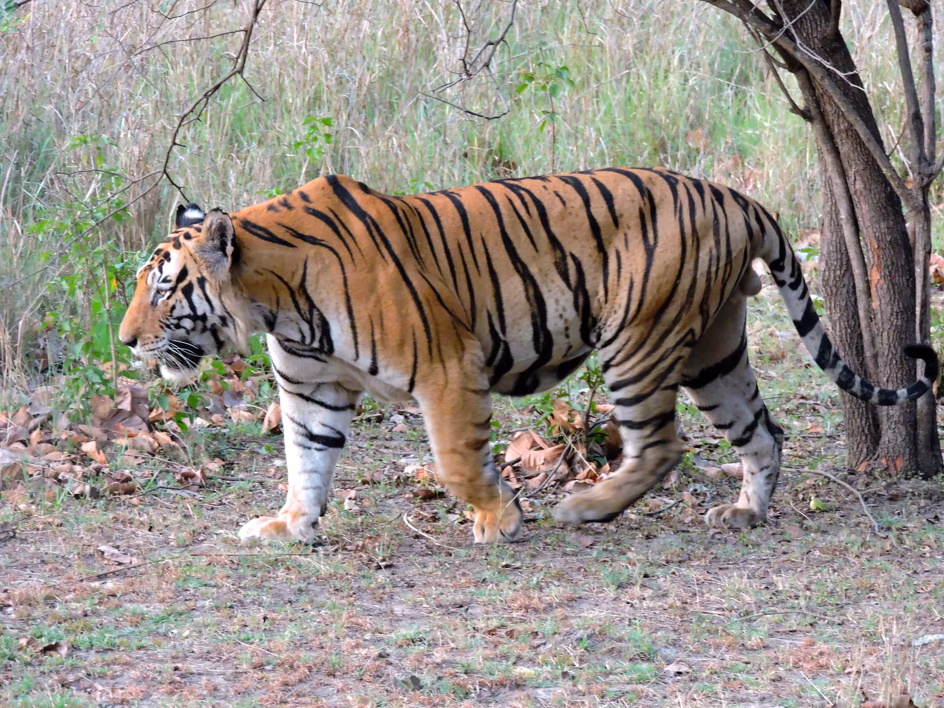 Bengal tiger – This population inhabits the Indian subcontinent. The Bengal tiger has shorter fur than tigers further north, with a light tawny to orange-red colouration, and relatively long and narrow nostrils.