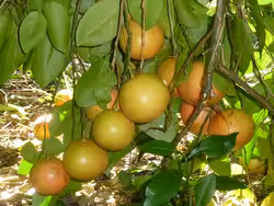 - The large spherical tart fruit produced by this tree.