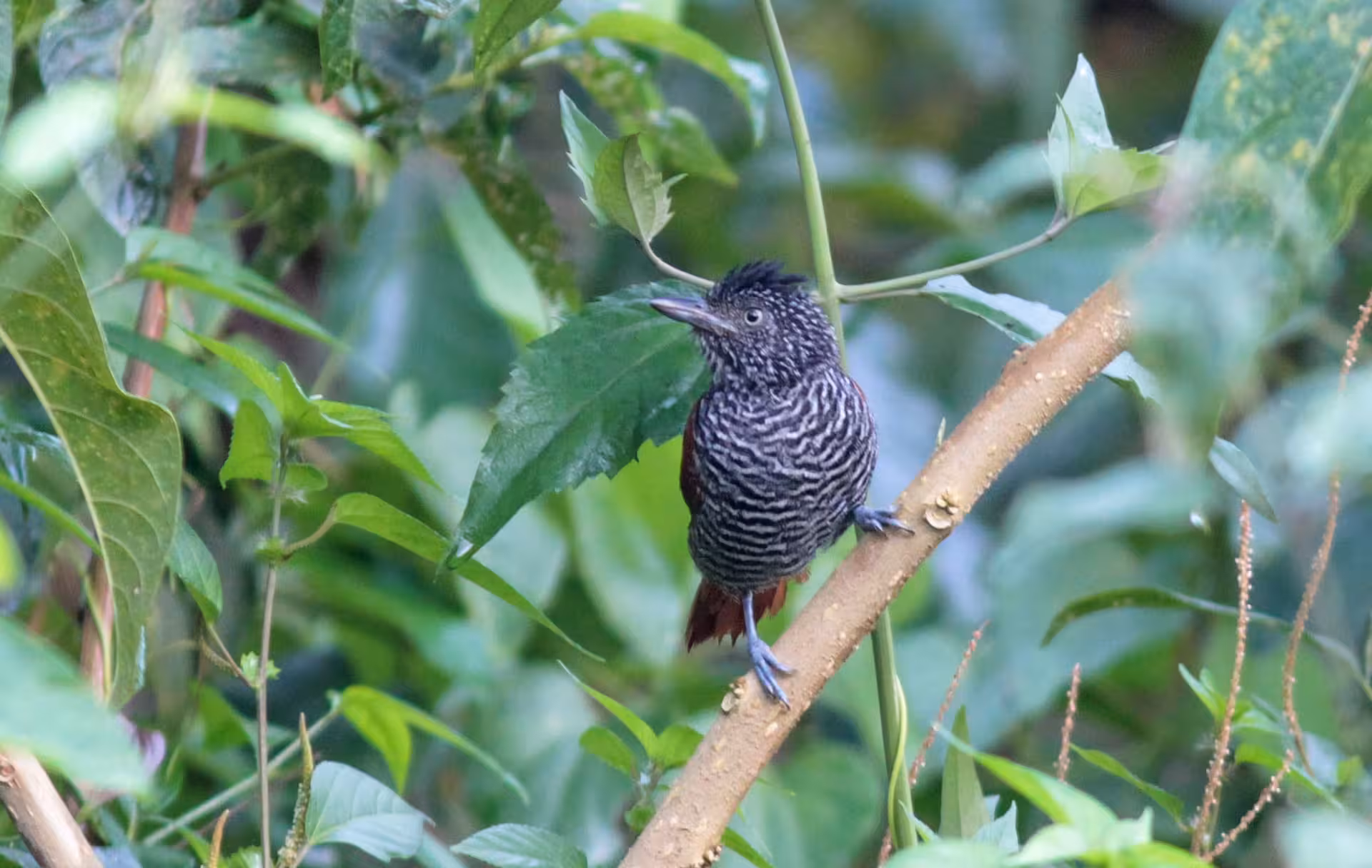 A passerine bird of the antbird family (Thamnophilus palliatus, syn. Lanius palliatus)