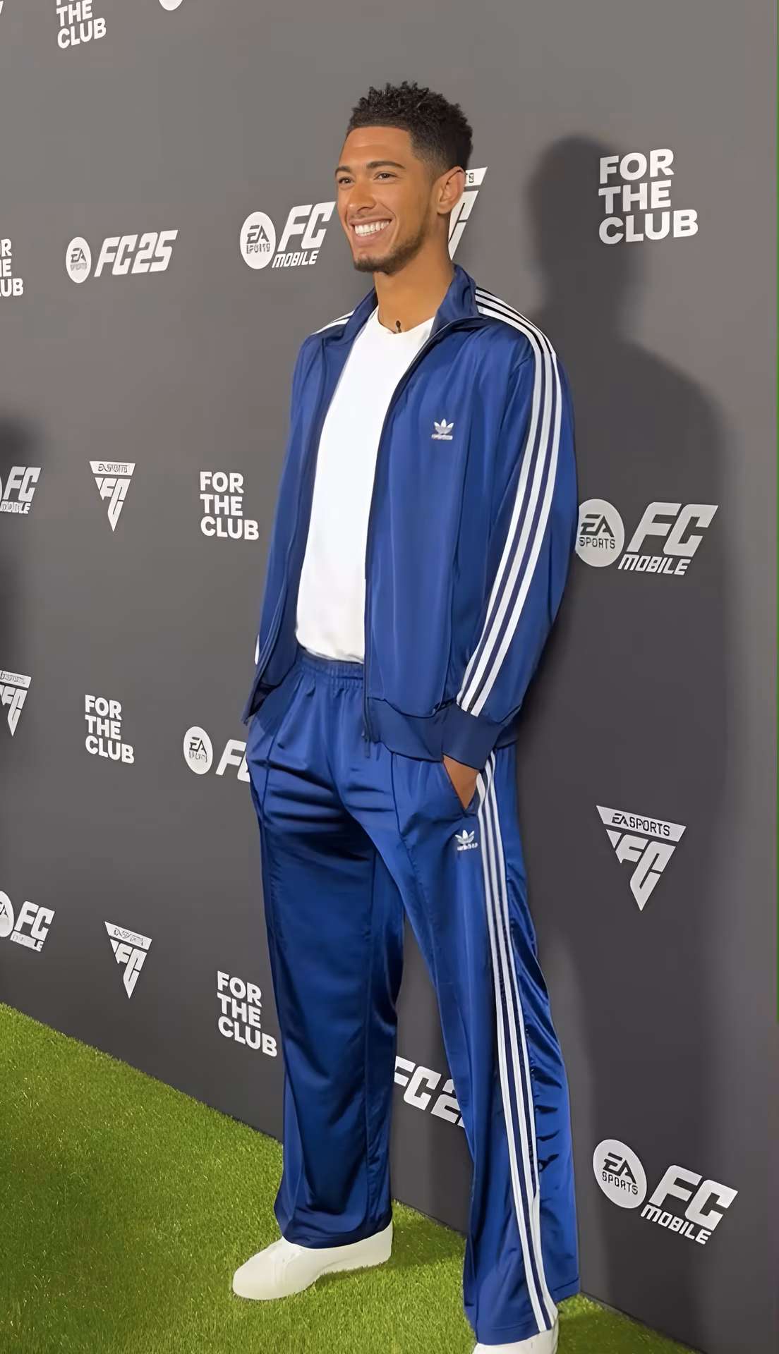 English footballer Jude Bellingham wearing a tracksuit at an EA Sports event in 2024