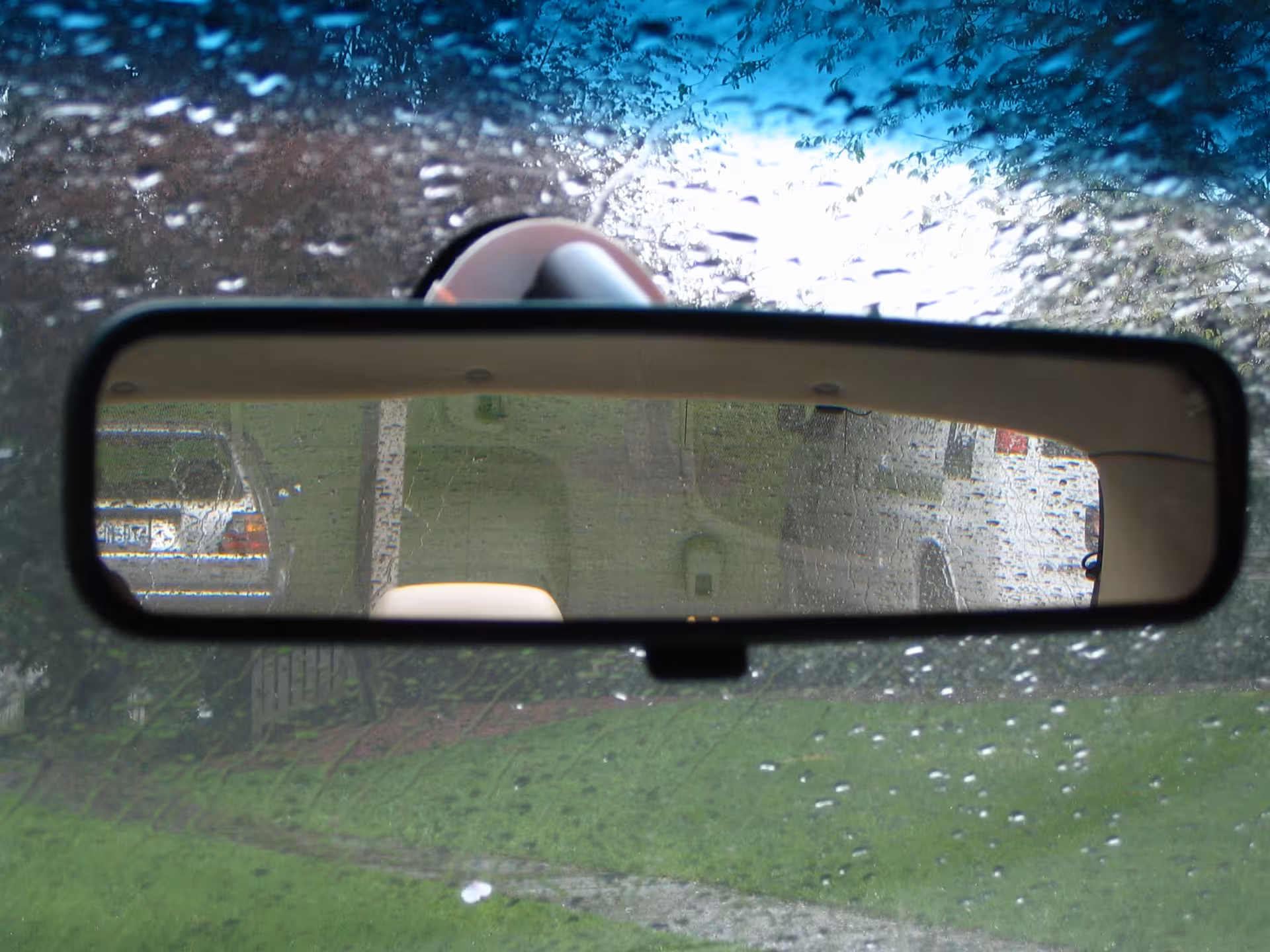A mirror inside a vehicle that allows the driver to see the traffic behind.