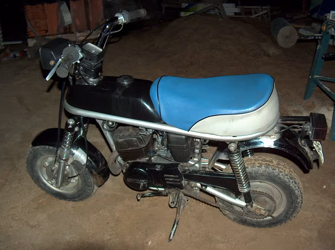 A miniature motorcycle, with a wheelbase in the range of 1000 mm and an engine displacing as little as 40cc.