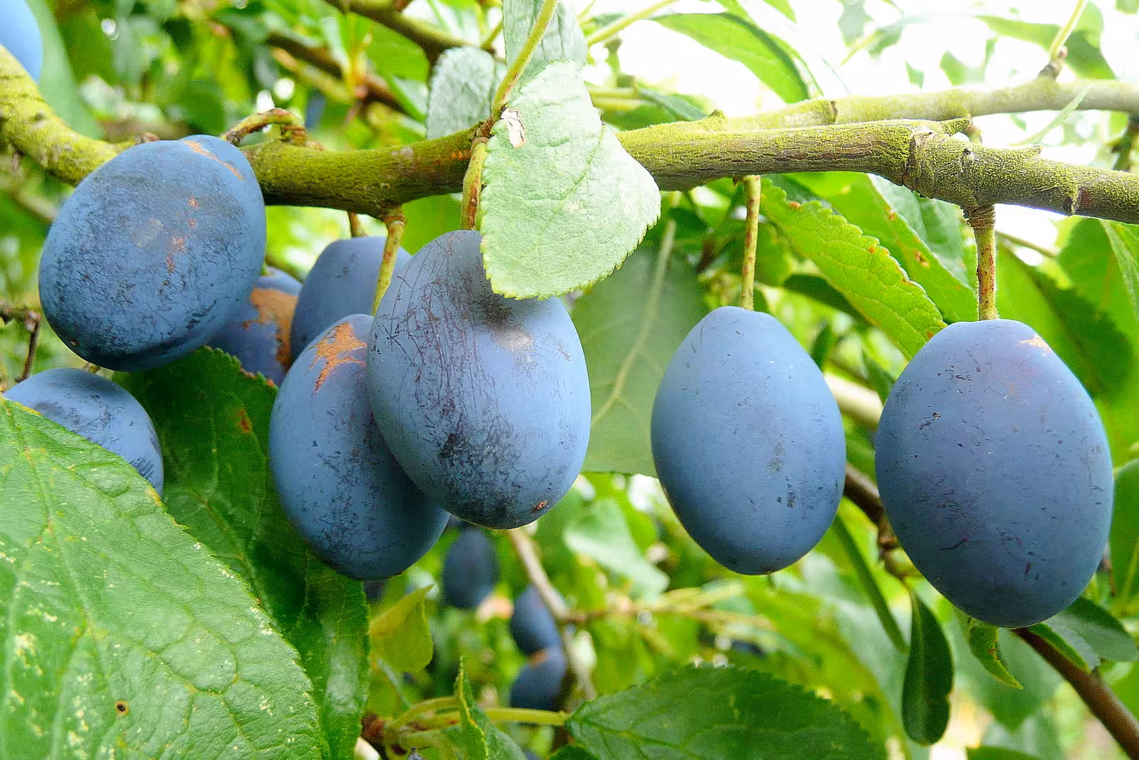 A stone-fruit tree which bears this fruit, Prunus domestica.