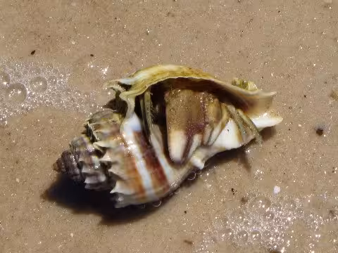 A shell of a dead Florida crown conch Melongena corona inhabited by a hermit crab