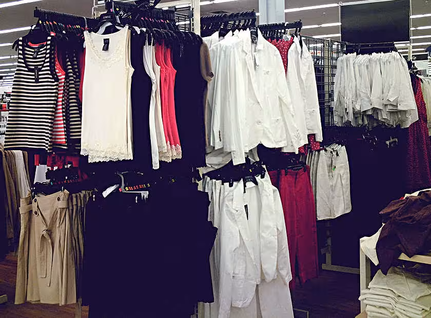 Ready-to-wear clothing display of a U.S. Walmart department retailer in 2007