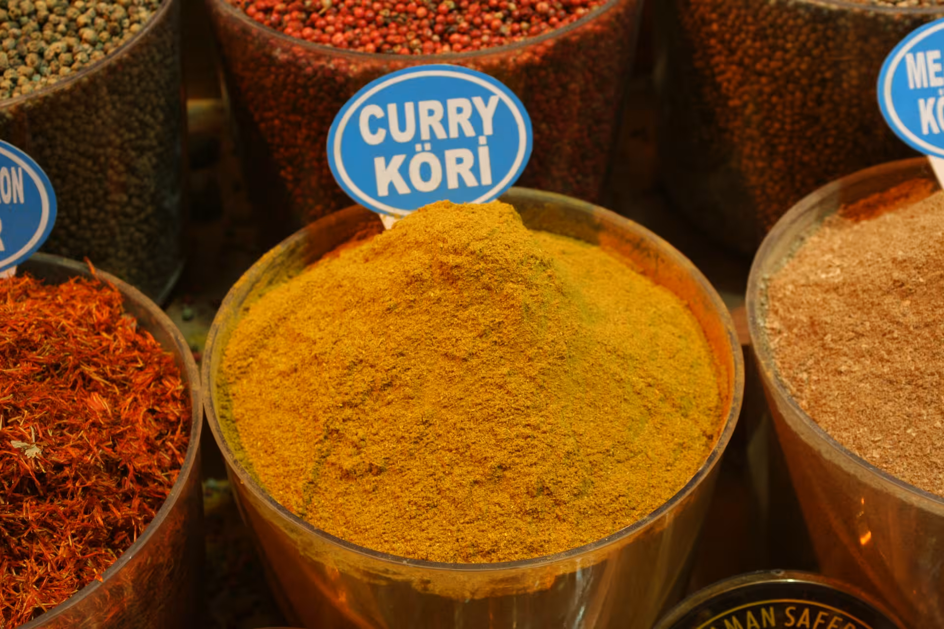 A mixture of spices, usually including turmeric, commonly used in Asian-style cooking.