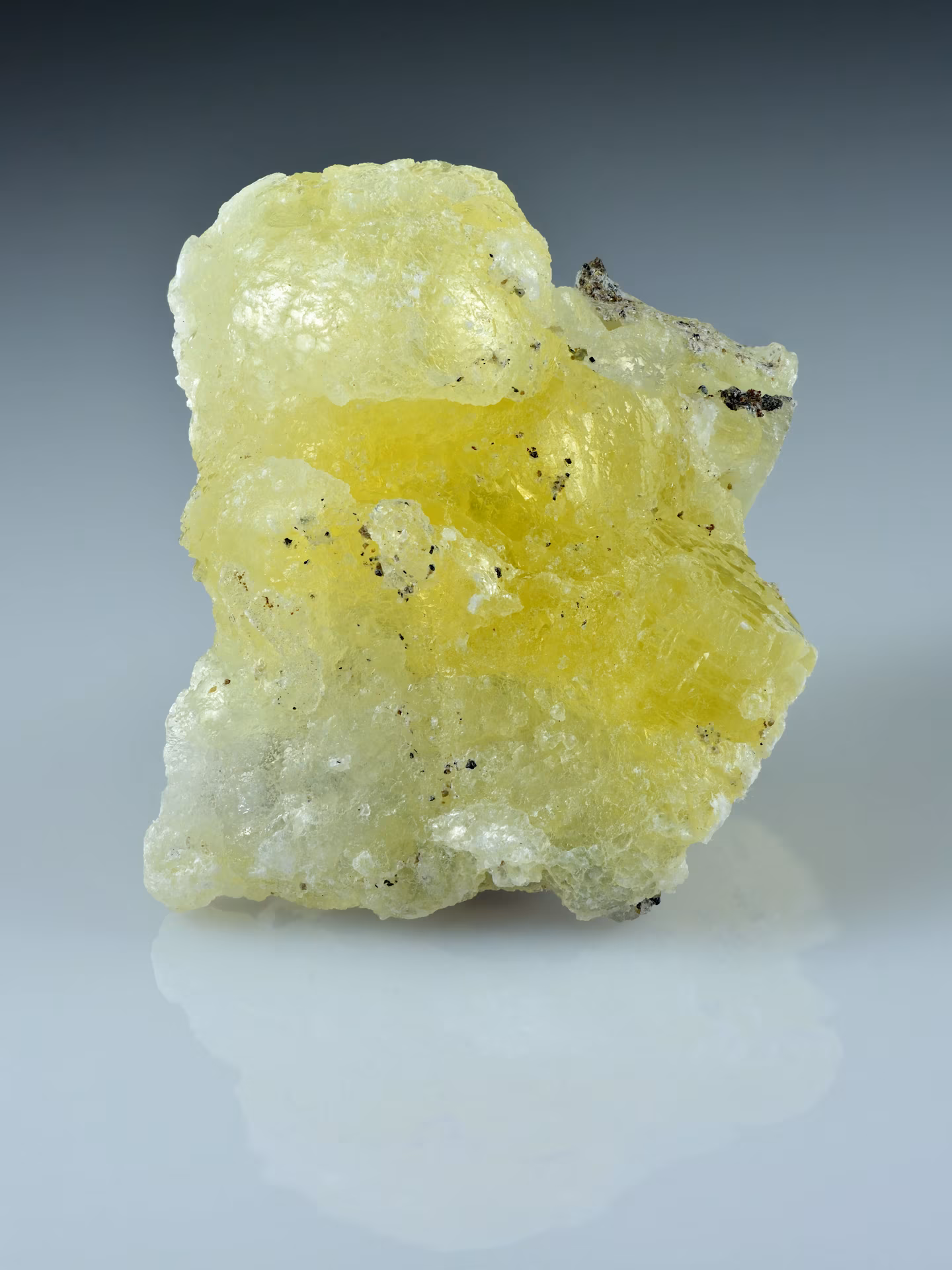 White, pale green, blue, gray; honey-yellow to brownish red – Tabular crystals; platy or foliated masses and rosettes – fibrous to massive – Perfect on {0001} – Irregular – Sectile – 2.5 to 3 – Vitreous to pearly – White – Transparent – 2.39 to 2.40 – Uniaxial (+) – Nω = 1.56–1.59 – Nε = 1.58–1.60 – 0.02 – Pyroelectric.