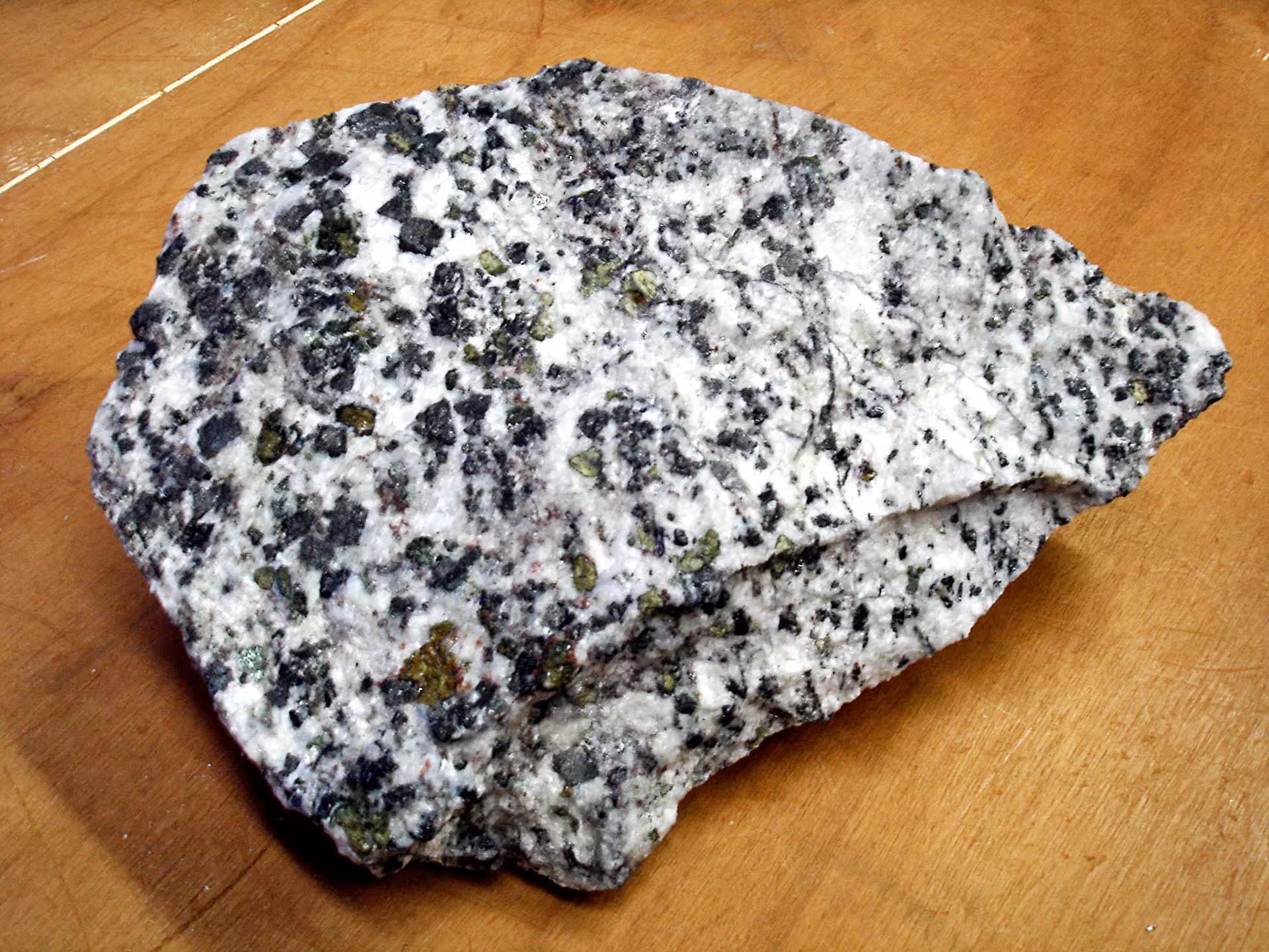 Carbonatite from Jacupiranga, Brazil. This rock is a mixture of calcite, magnetite, and olivine.