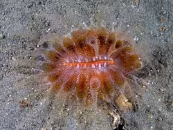 Flabellum – Temporal range: Cretaceous—Present – Kingdom: Animalia – Phylum: Cnidaria – Subphylum: Anthozoa – Class: Hexacorallia – Order: Scleractinia – Family: Flabellidae – Genus: Flabellum – Lesson, 1831 – Species – See text – Synonyms – Phyllodes.