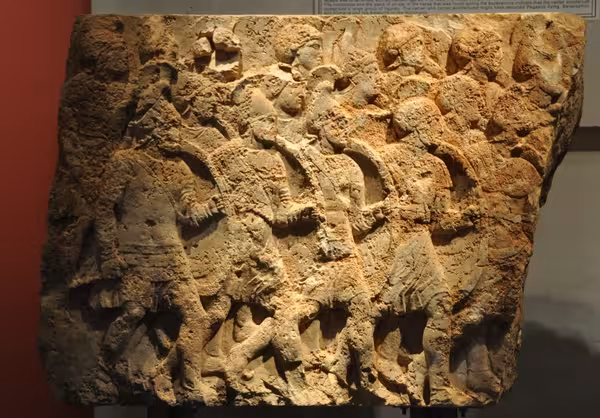 Sumerian phalanx-like formation c. 2400 BC, from detail of the victory stele of King Eannatum of Lagash over Umma, called the Stele of the Vultures