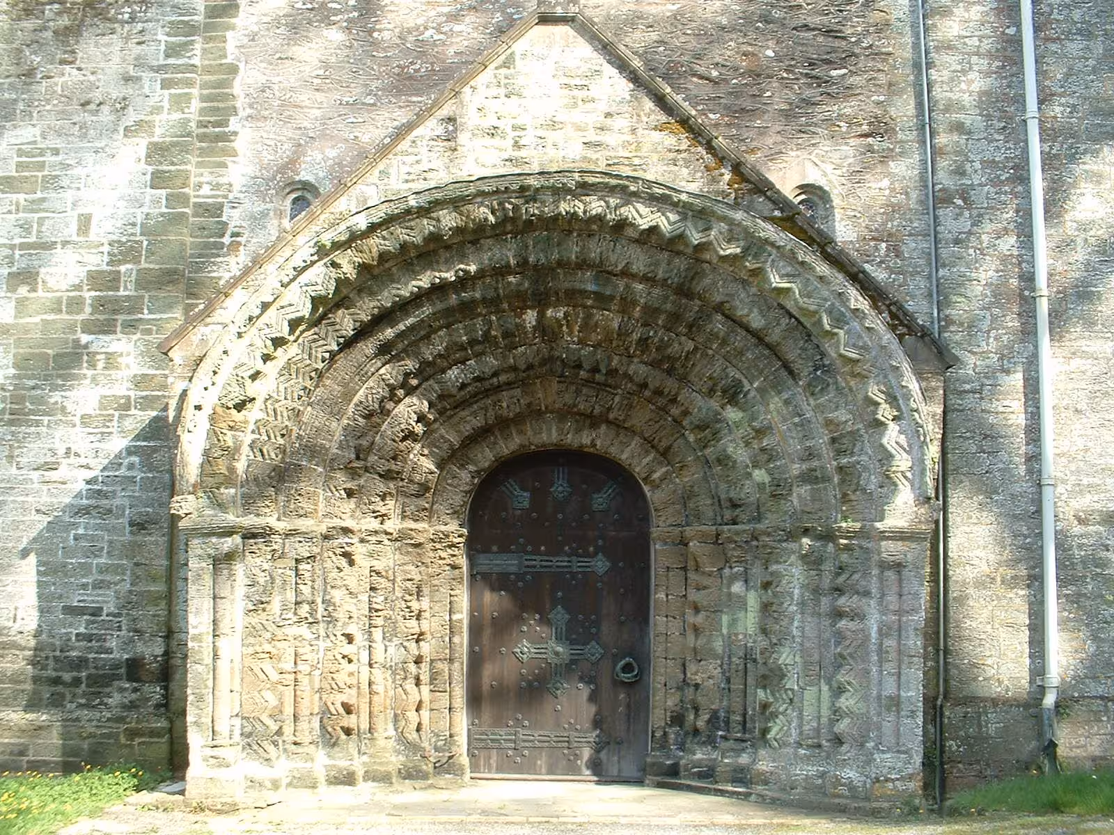 West doorway at St German's Church; built of Tartan Down stone (Landrake)