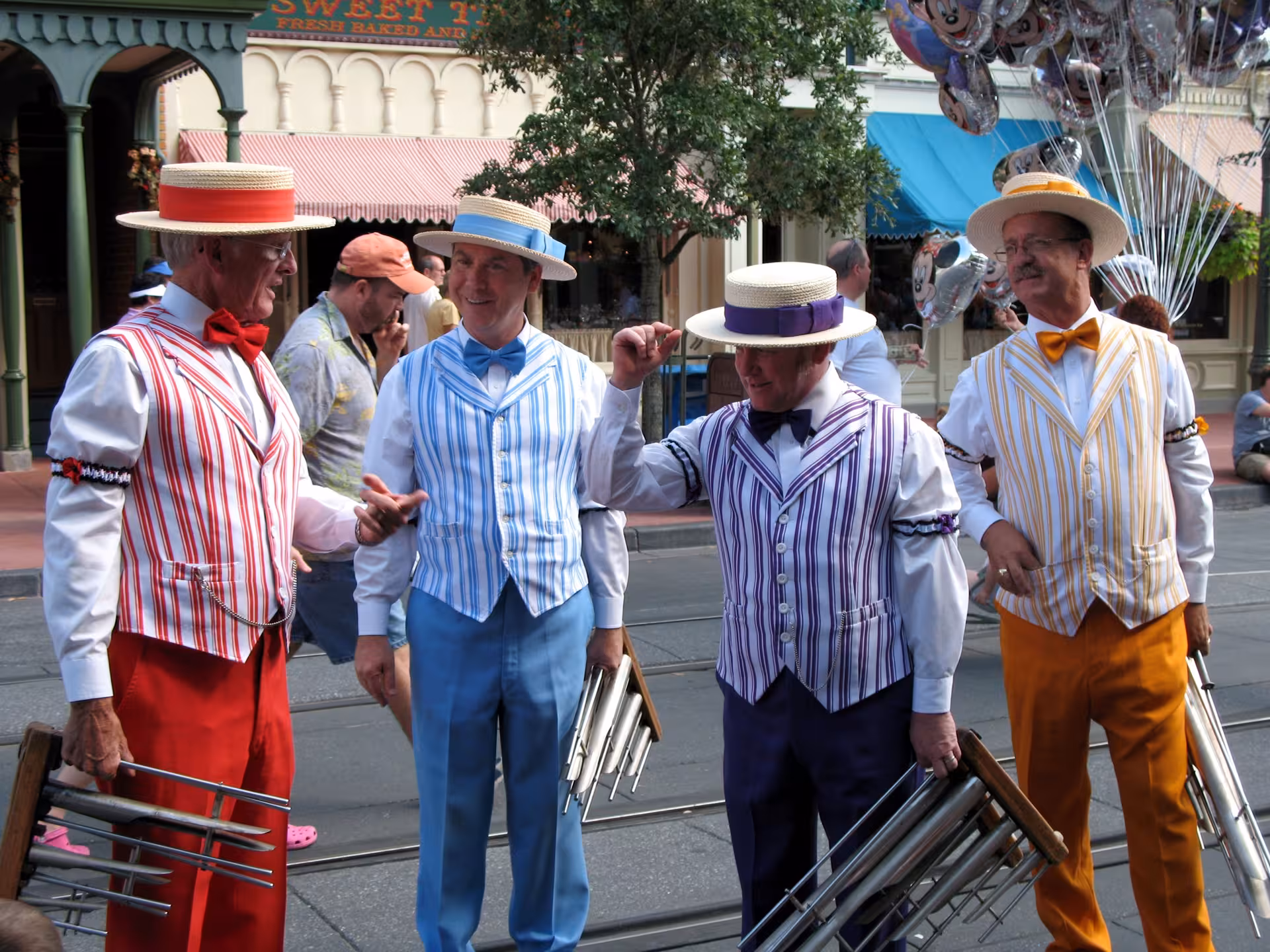 The Dapper Dans, a barbershop quartet at Walt Disney World, wearing sleeve garters
