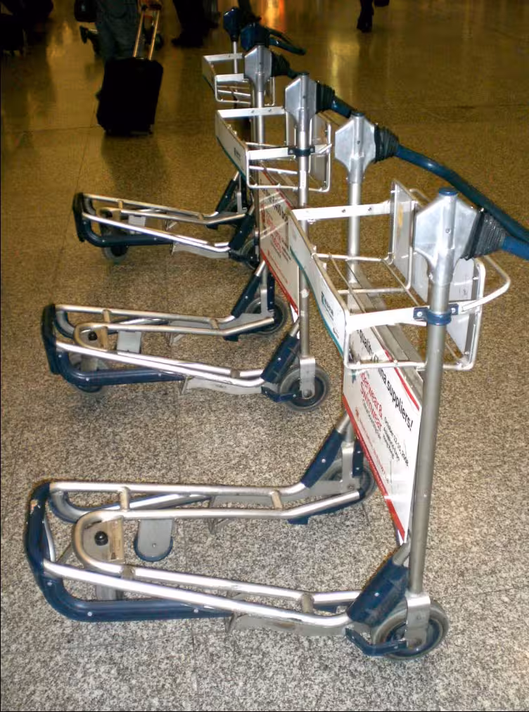 (fordon) enklare vagn som kan lånas för att köra bagage inom ett område, ofta en större järnvägsstation eller flygplats