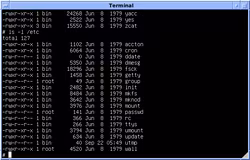 Version 7 Unix: /etc listing, showing init and rc