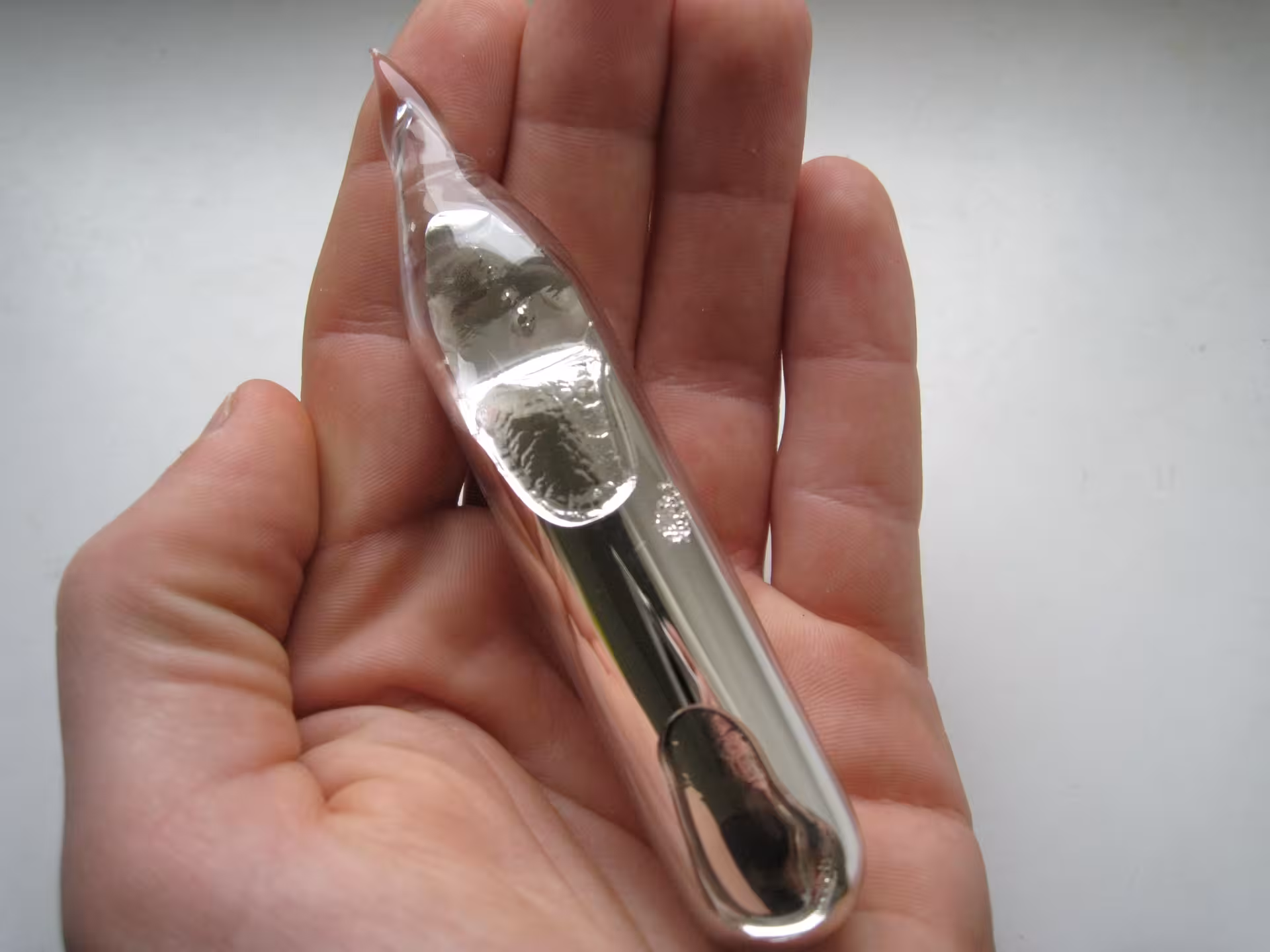Rubidium metal sample from the Dennis s.k collection. If you look close you can see some colorful superoxide inside the ampoule. These are only visible in bright light.