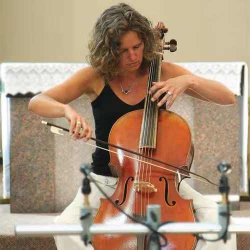 Josephine van Lier plays a violoncello piccolo, a five-string variant of the Baroque cello, during a recording session of Bach's 6th Cello Suite.