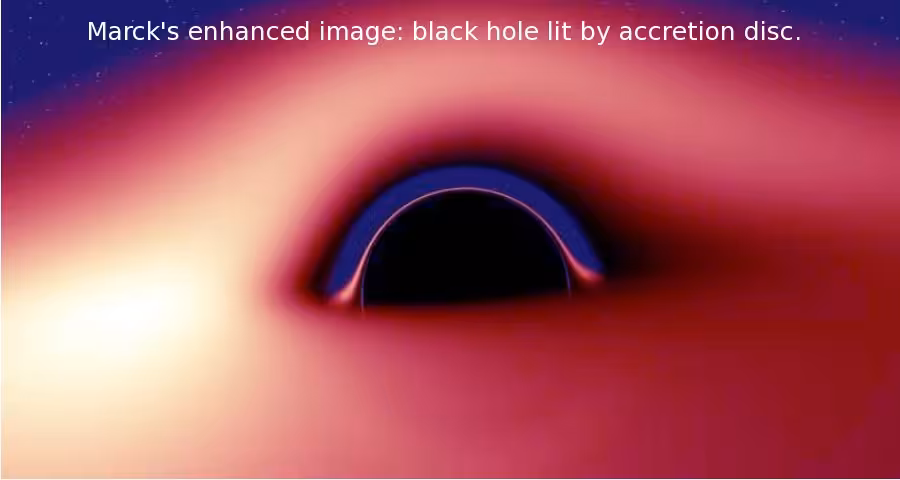 Simulated view from outside black hole with thin accretion disc